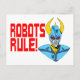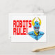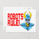 This design features an original cartoon drawing of a futuristic humanoid robot.