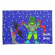 One-of-a-kind kids space standard size pillow case sets. Fun navy blue background with lots of stars and the wording, Let's Explore the Galaxy, Blast-Off. Floating in the galaxy is Captain Zacky a green robot alien with his spaceship friends, Green Dragon Spaceship, Dino the Dinosaur Spaceship, and Zippie the Blue Fish Spaceship. Cool space robot theme for kids rooms. Designed for the standard size pillow cases. Original Graphic Artwork Cartoon Characters Design Copyright © 2014 TamiraZDesigns. All Rights Reserved