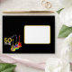 Rock and roll 50th birthday party self addressed envelope. 50 rocks for the rockstar husband, boyfriend, brother, dad or partner with these funky psychedelic guitars and cool gold typography on on black background. Unique colourful guitar illustrations with electric guitar with Fire flame and red pick guard, a multicoloured semi acoustic guitar and a psychedelic classic acoustic guitar. Easy to use template with personalised name and RSVP return address creates the perfect party stationary to celebrate fifty in rock n roll style. Ideal trendy party stationary for a guitarist, musician, live music band and music lovers. Any guitar player will tell you that you can never have too many guitars. This cool modern musical instrument design celebrates the music energy of this wonderful musical instrument and is the perfect way to rock a fiftieth birthday celebration. Original artwork by artist Catherine Sweetman