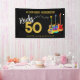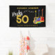 50 Rocks 50th birthday party guitar music personalised banner with three cool watercolor guitar designs on black background. An electric guitar with Fire flame pattern and red pick guard, a multicolored semi acoustic guitar and a psychedelic classic acoustic guitar art illustration with personalised black and gold modern cool typography. This easy to use template to change the age and name creates the perfect party sign to celebrate fifty in rock n roll style and is ideal for a guitarist, musician and music lovers. Any guitar player will tell you that you can never have too many guitars. This cool modern musical instrument design celebrates the music energy of this wonderful musical instrument and is the perfect way to rock a fiftieth birthday celebration. Original artwork by artist Catherine Sweetman