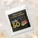 Rock and roll 50th birthday party thank you favour bags with funky psychedelic guitars, musical notes and cool gold typography on black. 50 Rocks for the rockstar husband, boyfriend, brother, partner or dad with these unique colourful electric guitar, semi acoustic guitar and acoustic guitar illustrations in vibrant bright colours. Personalise this easy to use template to create the perfect party themed thank you favour bag to say thank you to your guests for celebrating fifty in rock n roll style. Ideal for a guitarist, musician, live band and music lovers. This cool modern musical instrument design celebrates the music energy of this wonderful musical instrument and is the perfect way to rock a fiftieth birthday celebration. Original artwork by artist Catherine Sweetman
