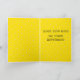 This card is great fun and good quality. I loved the humour inside and on the back. There is the opportunity to change the orientation of this card from landscape to portrait, which I did. It is relatively straightforward to amend the typeface to fit the new orientation. It was well packaged with no plastic. The printing on this card is excellent.