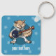 Rock and Roll Guitar Owl in Jumpsuit Cartoon Key Ring