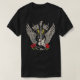 I give wanted to give this a 4 instead of a 5 because these Basic DARK T0shirts run unexpectedly SLIM or Narrow. Which is great if you do not have a potbelly, but I have a paunch. It isn't the shirt's fault that I've got a beer belly. The design and shirt itself is a quality cotton shirt. The color is more of a deep purple, but still a very pretty color. The Basic DARK T-shirts run a bit SLIMMER than the Basic Ts. The neck is a fraction narrower (or seems to be narrower) also. I'm a paunchy middle-aged woman and my neck is 12 inches (31cm) thick and the neckline fell about the same as in the photo of the man, and I had the desire to tug it a bit. So if you're a thick necked man or like loose shirts, be aware these are slimmer shirts. Once I get rid of my lockdown paunch it'll look great. The shirt washed well in cold water with no apparent bleeding. We don't have a dryer, so it hung dry. Did not shrink. Love the colors and the design. The design looks smaller on my shirt than it does on the model on-line. But still, it looks good on the shirt. The printing looks as it does on the model, just the size seems fractionally smaller. Washed garment in cold water, hung dry and design appeared unaffected.