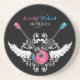 Personalised romantic couple coaster with rock and roll theme vector design on black. Featuring two electric guitars, pink and blue, with wings and vintage embellishments, this coaster can make a lovely keepsake or present for your guests on your wedding shower or engagement party.