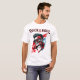 Cool modern Rock n Roll T-shirt with a stylised rockstar skull coloured red, white and blue and wearing a mohawk haircut