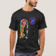 I give wanted to give this a 4 instead of a 5 because these Basic DARK T0shirts run unexpectedly SLIM or Narrow. Which is great if you do not have a potbelly, but I have a paunch. It isn't the shirt's fault that I've got a beer belly. The design and shirt itself is a quality cotton shirt. The color is more of a deep purple, but still a very pretty color. The Basic DARK T-shirts run a bit SLIMMER than the Basic Ts. The neck is a fraction narrower (or seems to be narrower) also. I'm a paunchy middle-aged woman and my neck is 12 inches (31cm) thick and the neckline fell about the same as in the photo of the man, and I had the desire to tug it a bit. So if you're a thick necked man or like loose shirts, be aware these are slimmer shirts. Once I get rid of my lockdown paunch it'll look great. The shirt washed well in cold water with no apparent bleeding. We don't have a dryer, so it hung dry. Did not shrink. Love the colors and the design. The design looks smaller on my shirt than it does on the model on-line. But still, it looks good on the shirt. The printing looks as it does on the model, just the size seems fractionally smaller. Washed garment in cold water, hung dry and design appeared unaffected.