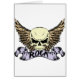 Great gift for any rock n roll fan or music lover! A Rock n Roll Skull with wings and banner says ROCK!