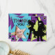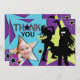 Party like a rock star! Aqua and green stars over purple background with girl singing and dancing: hip and sassy rock star thank you card.