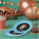 Rock star monkey playing guitar design. This coordinates with our invitations, and can be used for a birthday, baby shower, or any occasion. Change the border colour by entering your own BACKGROUND COLOR (or choose with the eye dropper tool)  Enter your own text on this plate for any occasion.