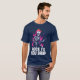 I give wanted to give this a 4 instead of a 5 because these Basic DARK T0shirts run unexpectedly SLIM or Narrow. Which is great if you do not have a potbelly, but I have a paunch. It isn't the shirt's fault that I've got a beer belly. The design and shirt itself is a quality cotton shirt. The color is more of a deep purple, but still a very pretty color. The Basic DARK T-shirts run a bit SLIMMER than the Basic Ts. The neck is a fraction narrower (or seems to be narrower) also. I'm a paunchy middle-aged woman and my neck is 12 inches (31cm) thick and the neckline fell about the same as in the photo of the man, and I had the desire to tug it a bit. So if you're a thick necked man or like loose shirts, be aware these are slimmer shirts. Once I get rid of my lockdown paunch it'll look great. The shirt washed well in cold water with no apparent bleeding. We don't have a dryer, so it hung dry. Did not shrink. Love the colors and the design. The design looks smaller on my shirt than it does on the model on-line. But still, it looks good on the shirt. The printing looks as it does on the model, just the size seems fractionally smaller. Washed garment in cold water, hung dry and design appeared unaffected.