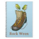 A cute illustration of a pair of rock wrens. These New Zealand birds are perched on an old leather hiking or tramping boot. A design for anyone who loves NZ native and endemic birds. Rock Wrens are small birds, they live in alpine areas of the South Island. Tuke Piwauwau
