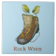 A cute illustration of a pair of rock wrens. These New Zealand birds are perched on an old leather hiking or tramping boot. A design for anyone who loves NZ native and endemic birds. Rock Wrens are small birds, they live in alpine areas of the South Island. Tuke Piwauwau