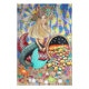 This is a drawing of a lady depicted as a mermaid. She is wearing an elaborate flower crown as an accessory and she is sitting on a magical giant cornucopia, which she owns and uses to produce goods (foods most especially) for the hungry. Despite her glamourous looks, she is known to be kind and charitable to the less fortunate.