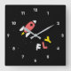 Retro, pop, colourful creation of a Rocket, Square Clock.