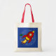 Illustration of cute rocket in outer space, surrounded by stars and a small green spaceship. Also matches the: