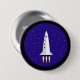 Button with flat vector illustration of rocket taking off into space