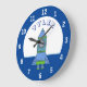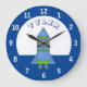 Rocket Ship Drawing Space Kid's Name Large Clock. A rocket ship in blue and green colours. Personalise the clock with name. It`s a cute gift idea for a birthday for a boy or decor for children`s room. A unique present for son, grandson or nephew.