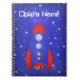A blue and red rocket ship soars through space, in this young space lovers design!