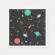 Planets, comets and rocket ship in black outer space for Child's birthday party