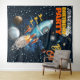 Rocketship Space Adventure Kids Birthday Backdrop Tapestry