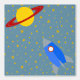 Rocketship to Saturn Design Wallpaper with stars and customisable background colour.