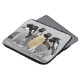The sleeve is made of nice feeling material and seems very durable. I'm not sure how easy it'll be to clean, but the construction seems sound and the fabric is quick thick. I also like the double zipper. The printing is lovely and appears durable. The white on black contrast is nice, and the design very elegant.