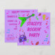 Throw your child the best rockin' birthday party ever. Use these great rock n roll theme invitations to coordinate with your child's party. Customise your invitations using the template. Choose you own background colours, fonts and insert all the details to make this invitation 100% personalised. Invitations design features a background colour of your choice with musical notes, speakers, guitar, radio and other music graphics scattered throughout the background