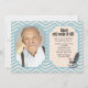 This invitation has a blue and cream chevron pattern and a decorative photo window and panel for your personalisation. It features a rocking chair motif and is perfect for a senior citizen's birthday celebration. (FP)