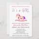 Cute rocking horse themed personalizable baby shower invitation card. Modern baby girl shower invitation with a text It`s a girl for your family and friends.