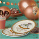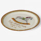 This paper plate features original digital painting by Leslie Sigal Javorek of a gold, silver & copper rocking horse, 3 outer rings to match & illusion of depth & colour of fine bone china. 3 text fields for baby's name, birth date & weight.