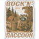 Racoon rock'n’ the forest night. This “Rock'n’ Racoon” can do more than hang around a trash bin!