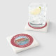Designed based on acrylic painting of Rockport Harbour in Massachusetts by Farida Greenfield. A lovely capture of Rockport Harbour, with its colourful buildings, view of the pier and boats docking on the harbour. Rockport is a seaside town in Essex County, Massachusetts, United States. The design has dark red circle on the outer side and texts that can be personalised on the top and lower side.