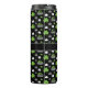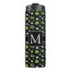 Thermal tumbler featuring a shamrock and curling rock pattern in green, white and grey on black background. Perfect for curlers and curling fans. Customise with your initial.