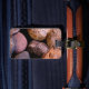 Make your luggage stand out on an airport carousel with unique tag designs! This luggage tag features an arrangement of rocks in a variety of shapes, textures, sizes and colours ranging from pink, to purple, to gold, to orange, to blue to grey to white spotted with black. They form an interesting abstract pattern. The back has your personal information. All text can be customised.