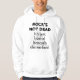 Fun Rock's Not Dead hoodie. This cool and funny hoodie states that Rock music is not dead! It's just buried beneath the surface - read to rise again someday! Text is ROCK'S NOT DEAD (on the front)...It's just buried beneath the surface (on the back). Has a fun triangle graphic in the background. Great for anyone!