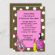 These rockstar invitations are a great way to get the girls together for your next birthday bash! A pink guitar and girly make up are featured on a brown polka dotted background.