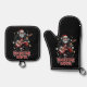 Durable and festive potholders featuring Rockstar Santa rocking out with his guitar, bringing personality and cheer into your holiday kitchen setup.