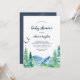 This Rocky Mountain baby shower invitation is perfect for an outdoor shower. The design features a blue and green painted wilderness landscape with watercolor pine trees, birds and mountains.