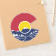 The Rocky Mountain Colorado C features the Colorado state flag colours, blue, red, white and gold. With the bold, simple style of the iconic Colorado State Flag, this unique design depicts the majestic Rocky Mountains and tree-lined valleys in blue and white. In the background, golden sunshine is framed by a red-hued sky. All depicted with the look of the iconic Colorado C. The Rocky Mountain Colorado C is classic Colorado style for any Colorado lover. Find this unique Rocky Mountain Colorado Sunset Logo design on t-shirts, and apparel.