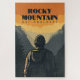 This design features a man hiking through a valley in the rocky mountain national park with the words "rocky mountain national park".