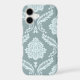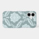 A vintage style decorative damask off-set surface pattern influenced by rococo classical design in duck egg blue color detail on a teal background.