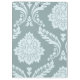 A vintage style decorative damask off-set surface pattern influenced by rococo classical design in duck egg blue color detail on a teal background.