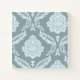 A vintage style decorative damask off-set surface pattern influenced by rococo classical design in duck egg blue color detail on a teal background.