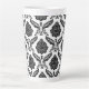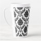 A vintage style decorative damask surface pattern influenced by rococo classical design in black detail on a white background.