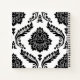 A vintage style decorative damask surface pattern influenced by rococo classical design in black detail on a white background.