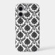 A vintage style decorative damask surface pattern influenced by rococo classical design in black detail on a white background.