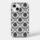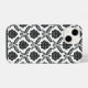 A vintage style decorative damask surface pattern influenced by rococo classical design in black detail on a white background.