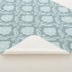 A vintage style decorative damask surface pattern influenced by rococo classical design in duck egg blue color detail on a teal background.