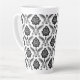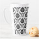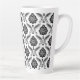 A vintage style decorative damask surface pattern influenced by rococo classical design in black and grey details on a white background.